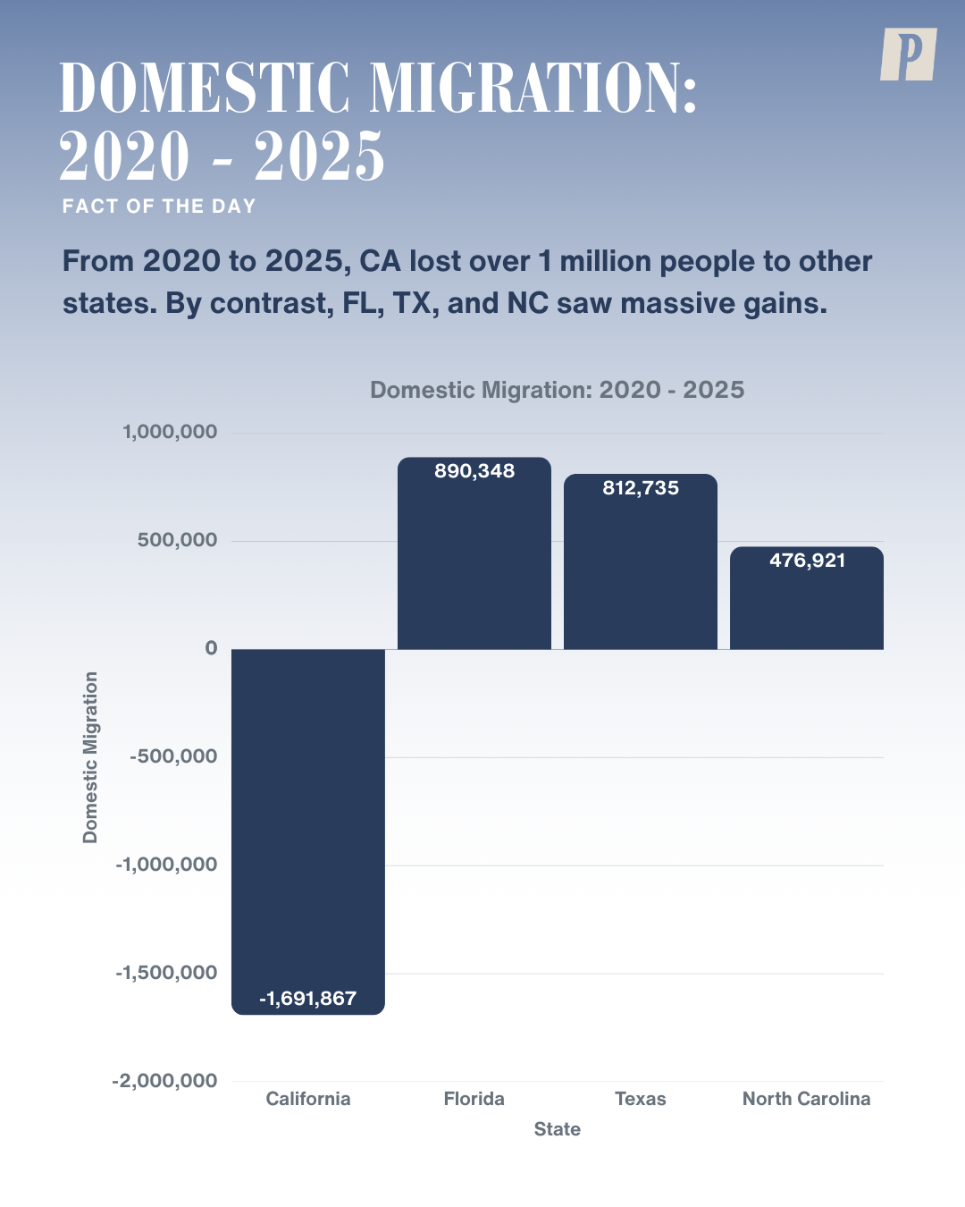 Which states are winning—or losing—residents over the past five years? From 2020 to 2025, California lost 1,691,867 people to other states, while Florida gained 890,348, Texas gained 812,735, and North Carolina gained 476,921. See how your state compares on Pioneer’s US DataLabs: https://loom.ly/nt9O1eQ