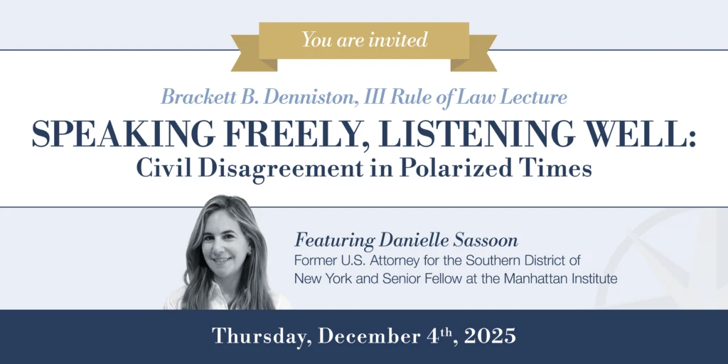 Pioneer Public Interest Law Center, Pioneer Institute’s nonprofit legal entity promoting educational options, accountable government, and economic opportunity, created the Brackett B. Denniston, III Rule of Law Lecture, dedicated to the critical issues challenging the rule of law in America, and named in honor of PPILC’s inaugural Board Chair.