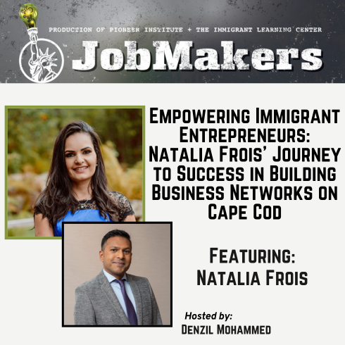 Denzil Mohammed: And thank you for helping to grow businesses across the Cape. JobMakers is a podcast about immigrant entrepreneurship and innovation produced by Pioneer Institute, a think tank in Boston, and the Immigrant Learning Center in Malden, Massachusetts, a not for profit that gives [00:18:00] immigrants a voice. Thank you for joining us for today’s inspiring story of an immigrant business owner who’s building up other businesses and her wider community.