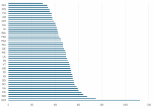 Figure 1: Percent Growth in Total State Expenditures Per Capita from 2017 to 2022. Data from Pioneer Institute’s US DataLabs.